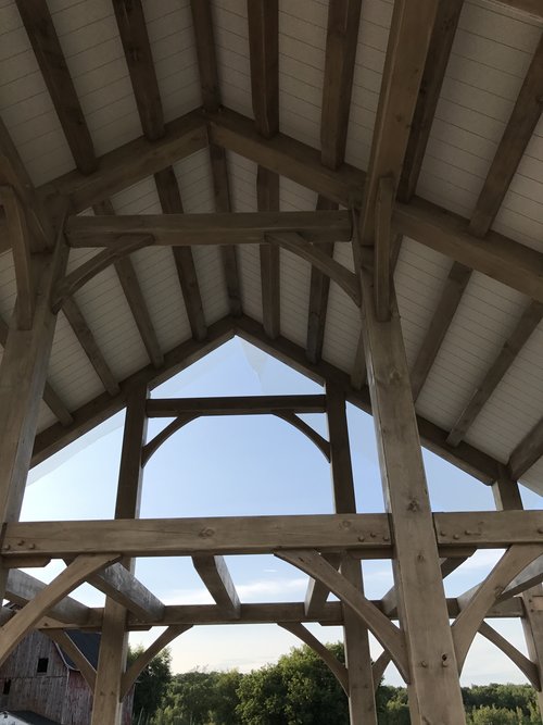 It is worth pointing out that all joinery is traditional mortise and tenon locked together with white oak pegs. The majority of timber connections require no steel fasteners.
